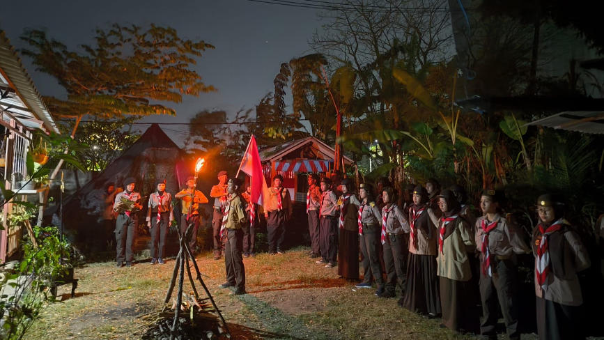 Apa yang paling dikenang bagi pramuka ketika Hari Pendidikan? Yang paling dikenang adalah Sistem Among yang diinspirasikan dari gagasan Ki Hajar Dewantara. Ing ngarsa sung tuladha, Ing madya mangun...